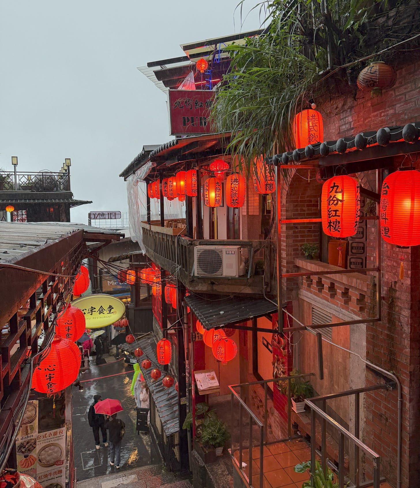 I hopped on a ruthlessly efficient bus to the town. Jiufen is a small old town in the mountains north east of Taipei. Notorious for its tight alley ways and cosy tea houses. Supposedly the area inspired the bath in the anima film ‘Spirited Away’. Thick fog inhibited any view from the mountains. Dark rain clouds let loose their armoury. 2pm was made to seem like 9pm. A sea of umbrellas crowded the already cramped streets. Red lanterns lined tight alleyways. The buildings were built from a local stone that seemed blackened in the rain. I dipped into a local tea house having bumped into my English friend. A local taught me a complex tea routine. Tea leaves must be soaked in boiling water. The liquid is then poured out. More boiling water is added to the teapot. ‘Count to 30 and add 10 seconds every time you add more boiling water’. Tea was then poured into a thin cylindrical cup to be smelled. Satisfactorily smelled the tea is then poured into a small cup for drinking. Rince and repeat.