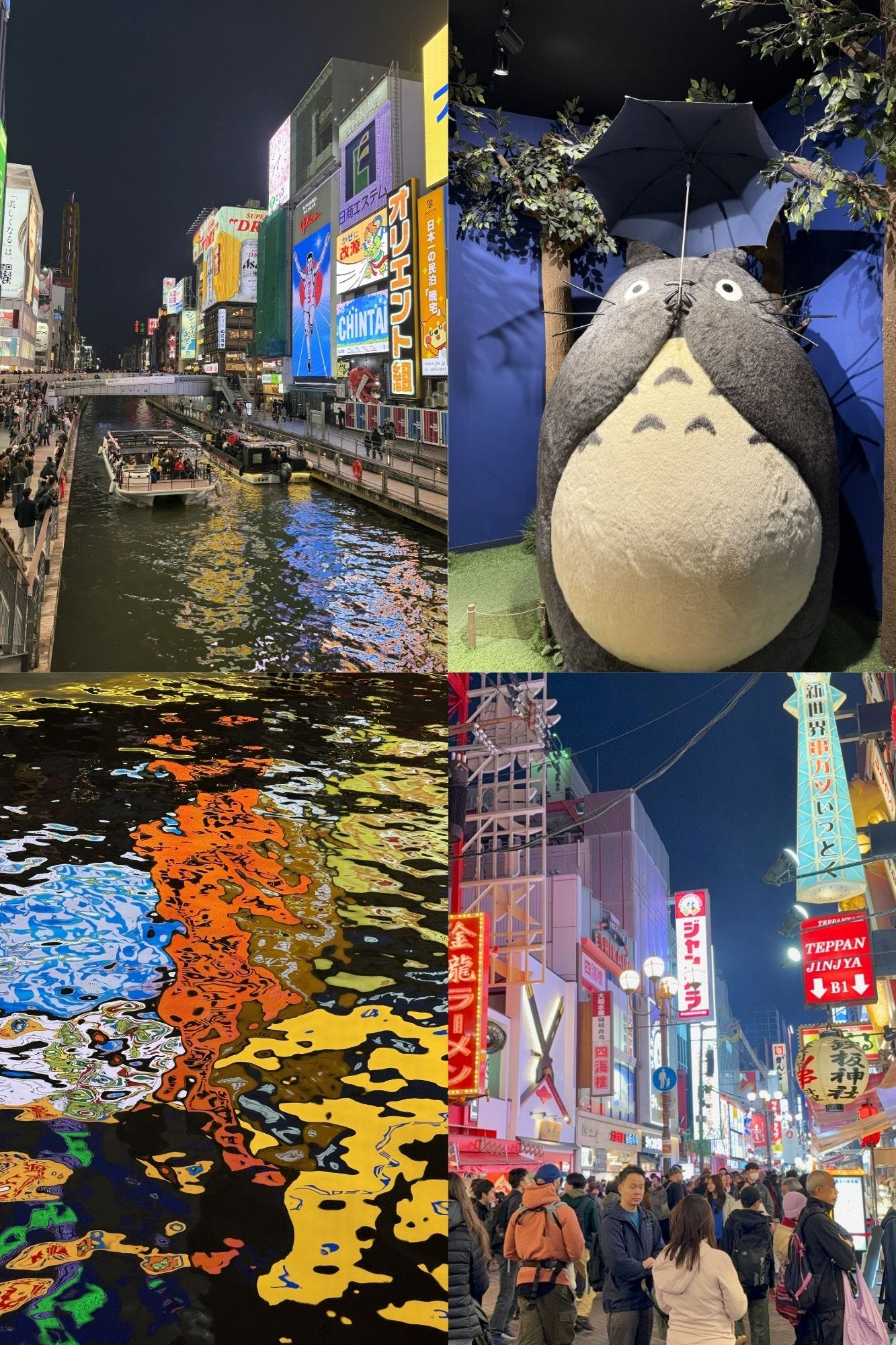 (02 April 2025) Osaka: Our hotel had a bamboo interior and matched the serenity of a spa. We were habitually early for check in. Our watches must have run ahead of schedule. To kill time, we walked to a famous shopping mall. Immersing ourselves in the rush of city life. Salary men in gilets hunted for lunch in packs of 3 or 4. Overflowing smoking cabins showcased the stress of city life. Popular franchises such as Lego, Godzilla, and Mario had large stores in the mall. A purposeful lack of signage had us lost. Resisting the temptation to buy anything we headed back to the hotel. At night we went on the hunt for some food. A small canal carved its way through a colourful corridor of electronic billboards. Every bit of real estate was postered with epilepsy inducing adverts. A kaleidoscopic smudge of reflected light danced in the wake of the boats. We slalomed our way through the bustling night life. A nearby sushi restaurant was contrastingly quiet. We watched as the chefs prepped our food. Finely slicing raw fish for our delight.